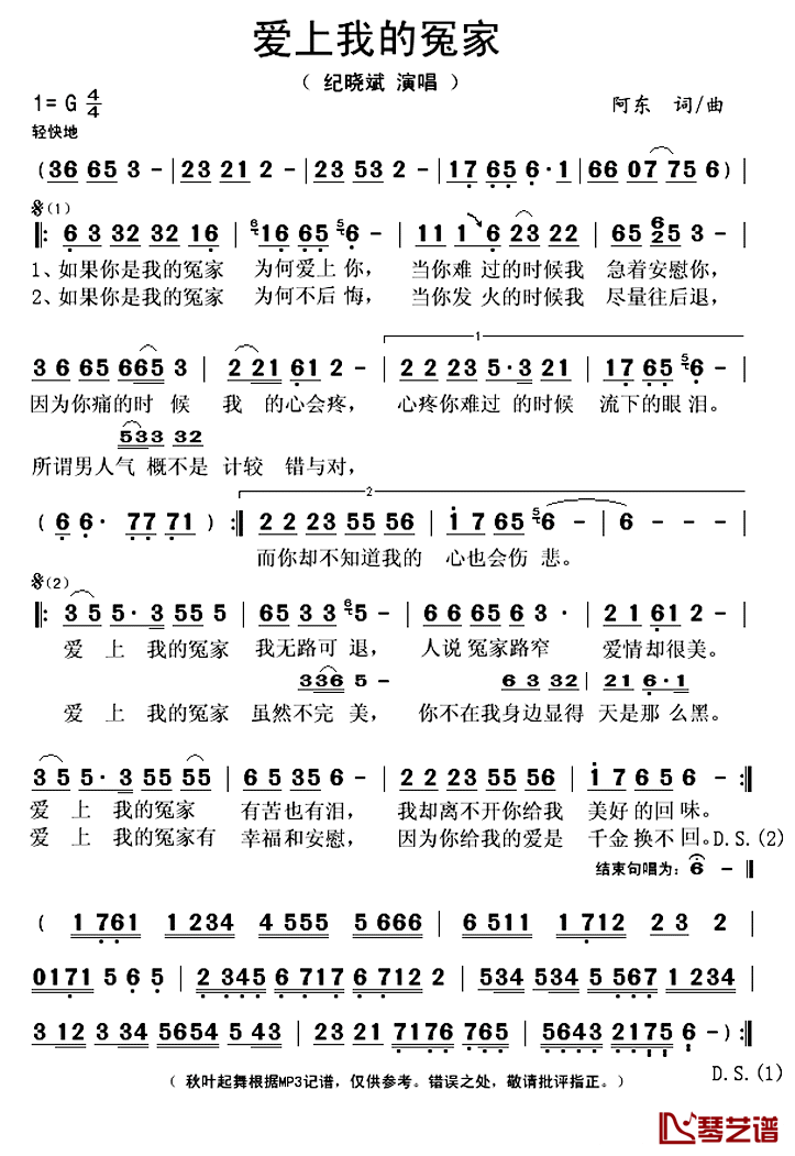 《纪晓斌《爱上我的冤家简谱》》内容来自于互联网,不能保证内容的准确性与完整性,仅供学习交流欣赏,请勿用于其它用途,内容版权归原作者及来源网站所有,如有侵犯到您的权益请来信告知,我们将及时删除。