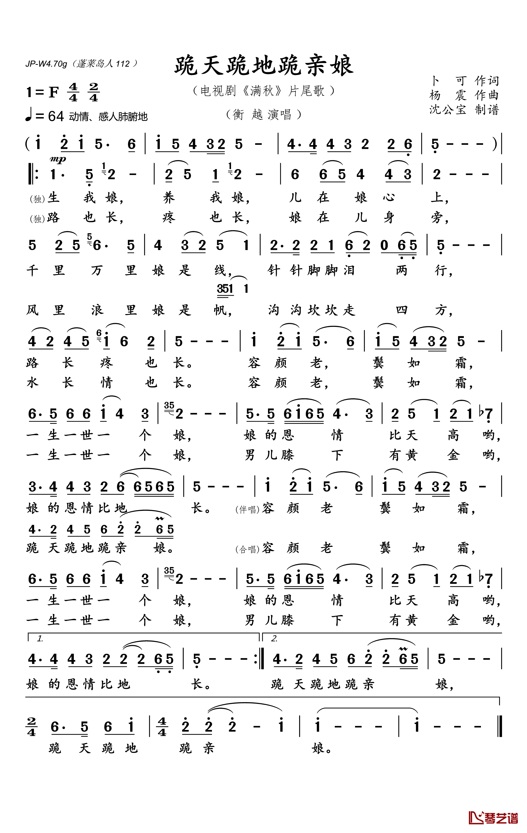 《衡越《跪天跪地跪亲娘简谱》》内容来自于互联网,不能保证内容的准确性与完整性,仅供学习交流欣赏,请勿用于其它用途,内容版权归原作者及来源网站所有,如有侵犯到您的权益请来信告知,我们将及时删除。