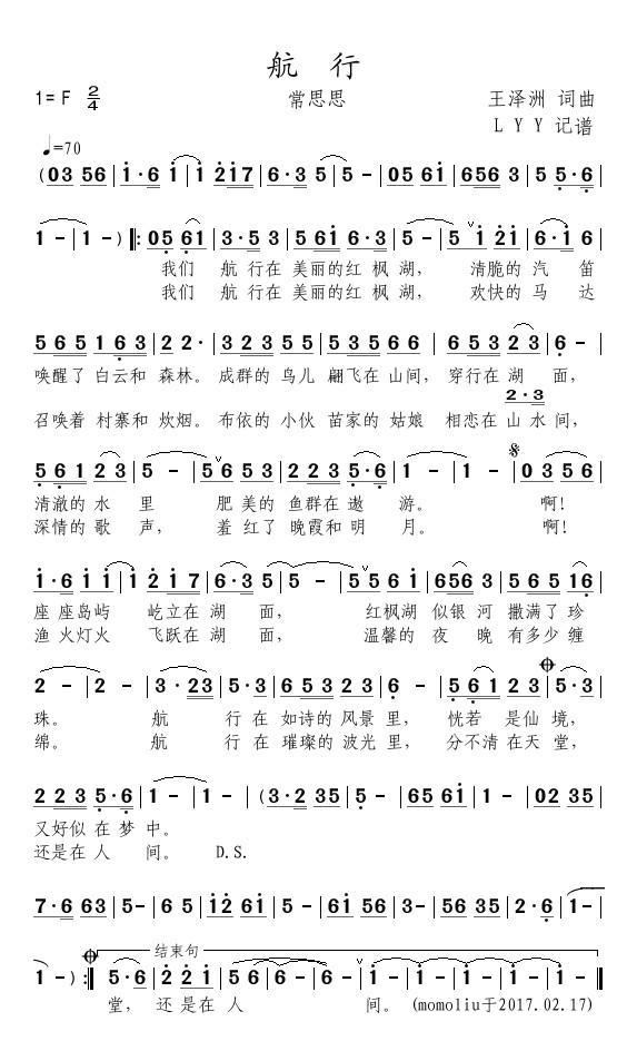《常思思《航行简谱》》内容来自于互联网,不能保证内容的准确性与完整性,仅供学习交流欣赏,请勿用于其它用途,内容版权归原作者及来源网站所有,如有侵犯到您的权益请来信告知,我们将及时删除。
