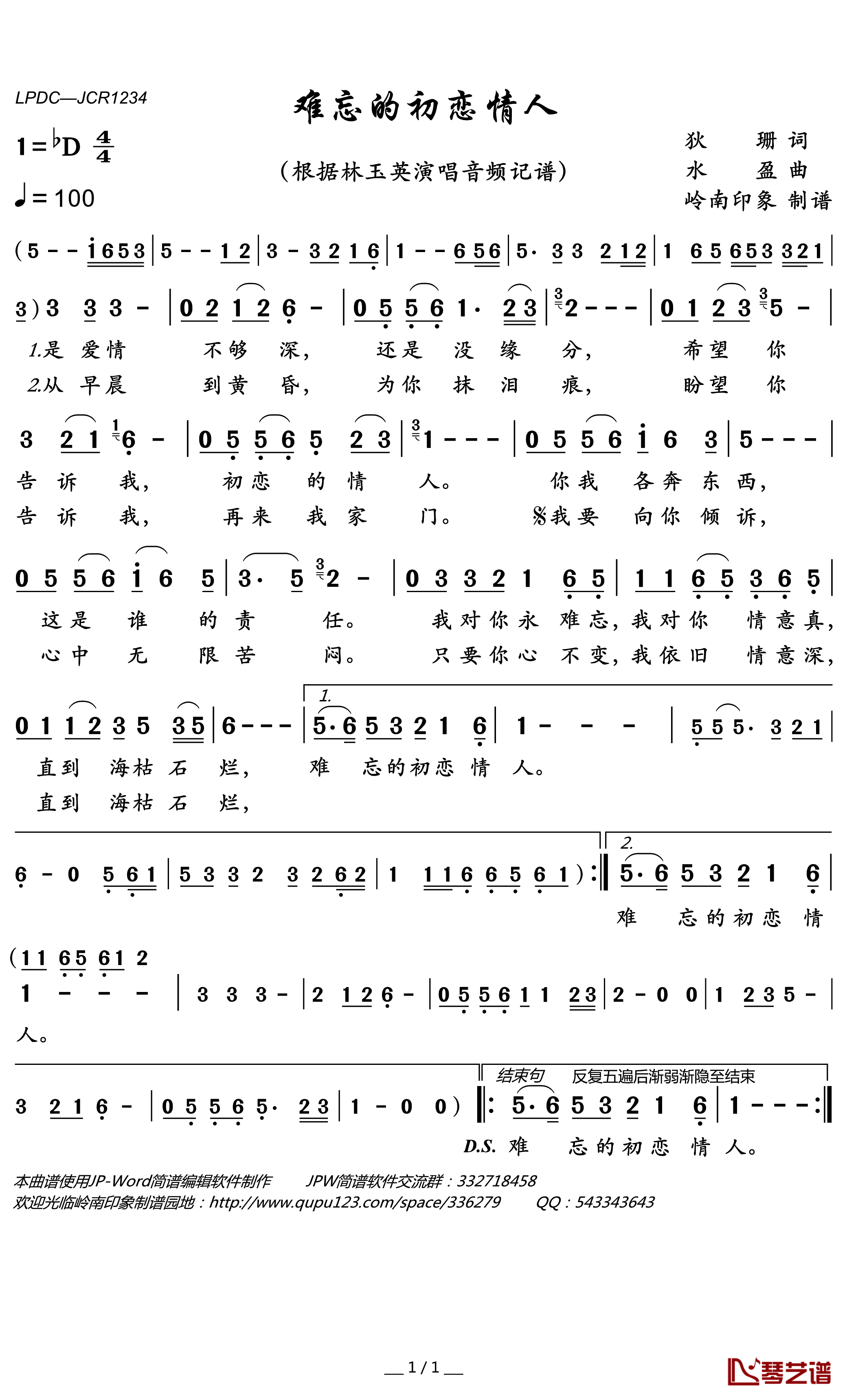 《林玉英《难忘的初恋情人简谱》》内容来自于互联网,不能保证内容的准确性与完整性,仅供学习交流欣赏,请勿用于其它用途,内容版权归原作者及来源网站所有,如有侵犯到您的权益请来信告知,我们将及时删除。