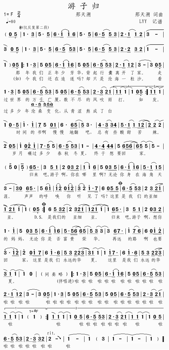 本文标题 《邢天溯《游子归简谱》》,网址:https://www.21qupu.com/jianpu/56122.html