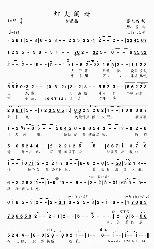 徐晶晶《灯火阑珊简谱》