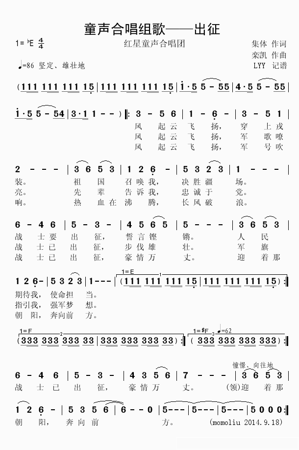 红星童声合唱团《童声合唱组歌之四——出征简谱》