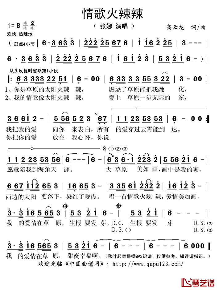 《张娜《情歌火辣辣简谱》》内容来自于互联网,不能保证内容的准确性与完整性,仅供学习交流欣赏,请勿用于其它用途,内容版权归原作者及来源网站所有,如有侵犯到您的权益请来信告知,我们将及时删除。