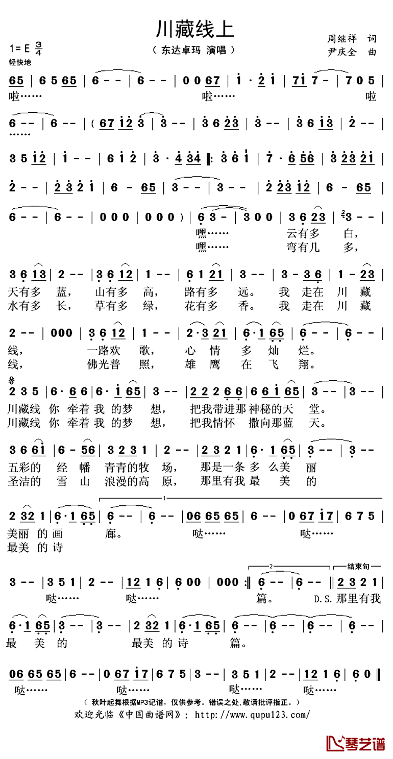 本文标题 《东达卓玛《川藏线上简谱》》,网址:https://www.21qupu.com/jianpu/56460.html