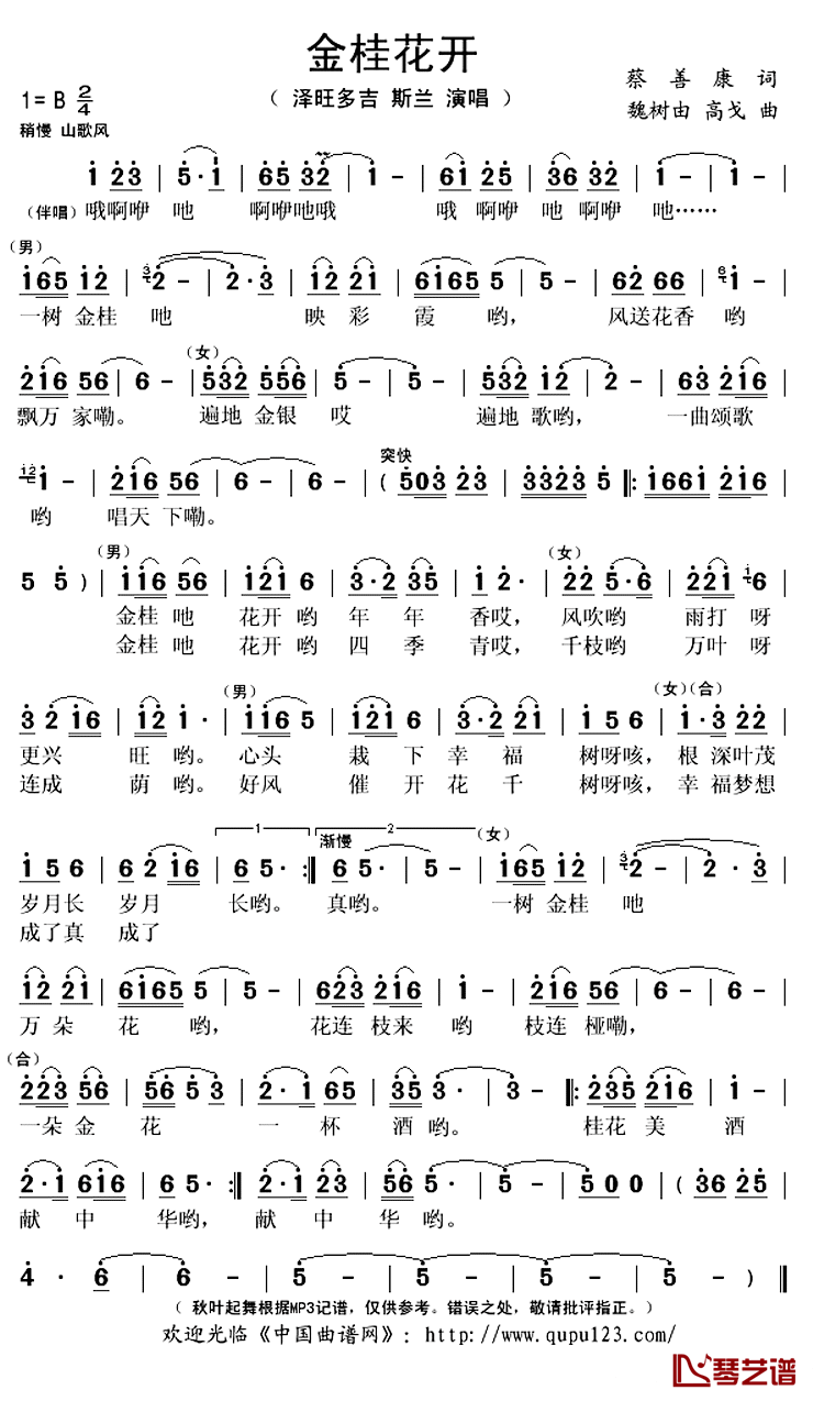 本文标题 《泽旺多吉/斯兰《金桂花开简谱》》,网址:https://www.21qupu.com/jianpu/56477.html