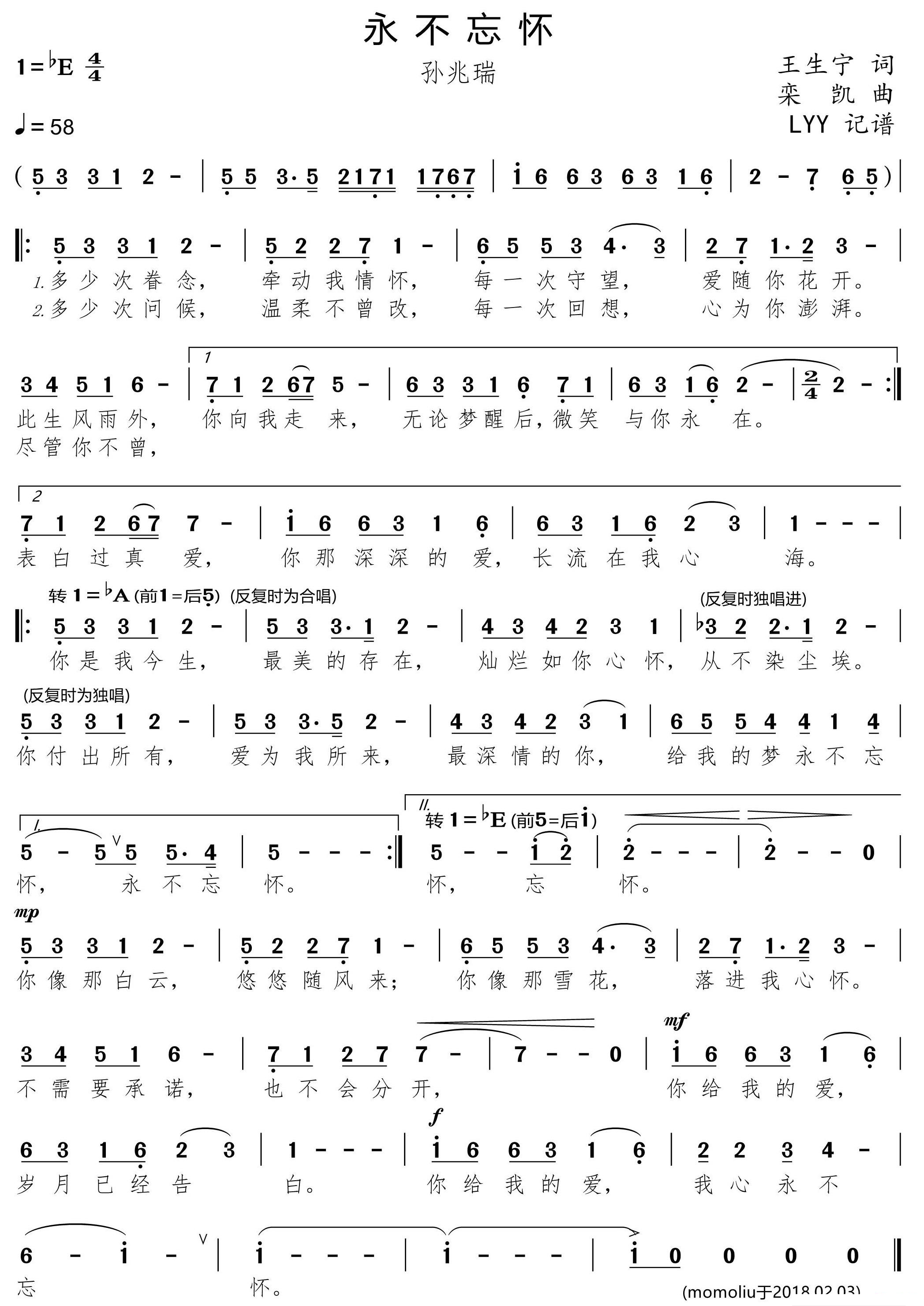 《孙兆瑞《永不忘怀简谱》》内容来自于互联网,不能保证内容的准确性与完整性,仅供学习交流欣赏,请勿用于其它用途,内容版权归原作者及来源网站所有,如有侵犯到您的权益请来信告知,我们将及时删除。