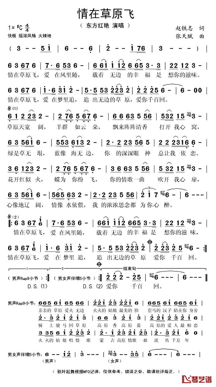 《东方红艳《情在草原飞简谱》》内容来自于互联网,不能保证内容的准确性与完整性,仅供学习交流欣赏,请勿用于其它用途,内容版权归原作者及来源网站所有,如有侵犯到您的权益请来信告知,我们将及时删除。