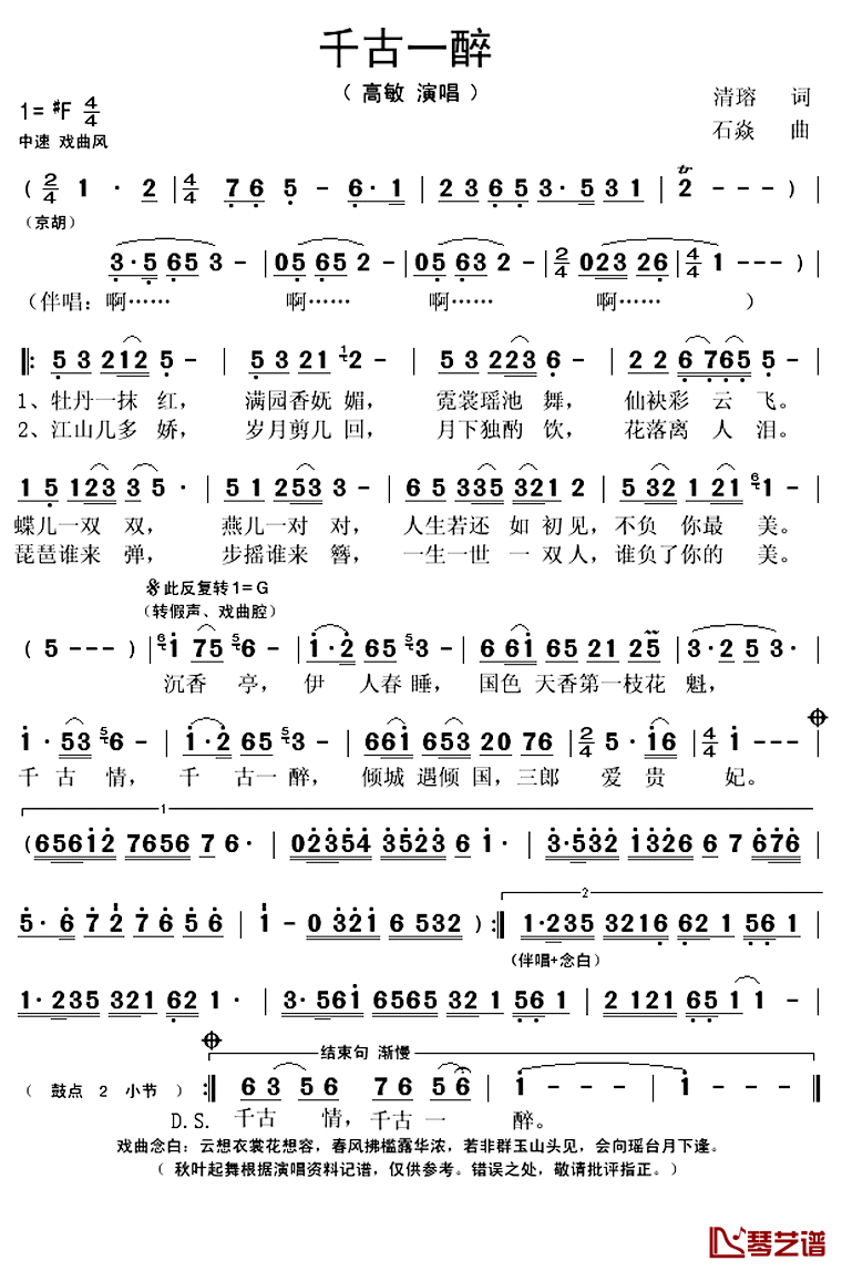 《高敏《千古一醉简谱》》内容来自于互联网,不能保证内容的准确性与完整性,仅供学习交流欣赏,请勿用于其它用途,内容版权归原作者及来源网站所有,如有侵犯到您的权益请来信告知,我们将及时删除。