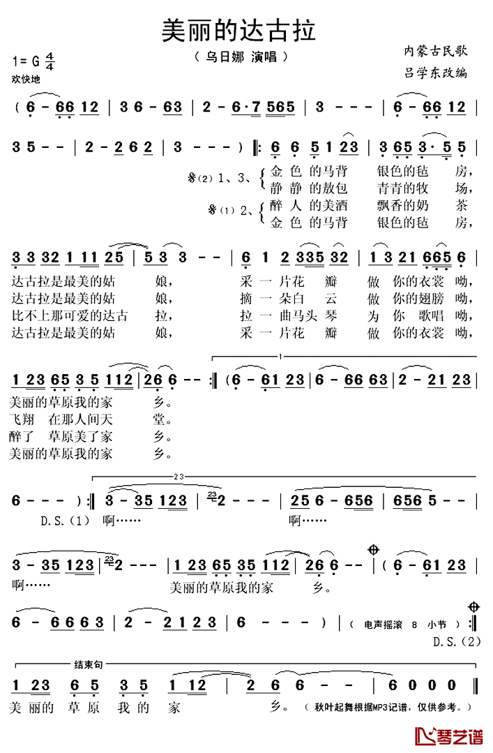 《乌日娜《美丽的达古拉简谱》》内容来自于互联网,不能保证内容的准确性与完整性,仅供学习交流欣赏,请勿用于其它用途,内容版权归原作者及来源网站所有,如有侵犯到您的权益请来信告知,我们将及时删除。