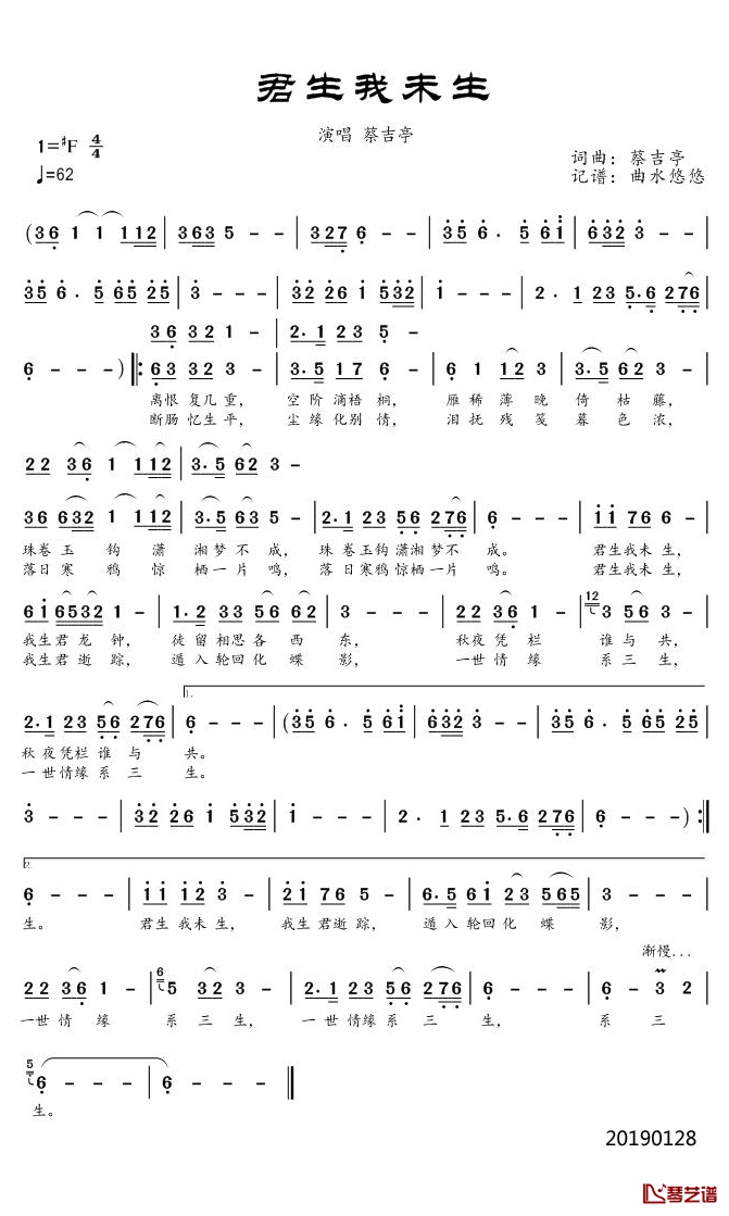 《蔡吉亭《君生我未生简谱》》内容来自于互联网,不能保证内容的准确性与完整性,仅供学习交流欣赏,请勿用于其它用途,内容版权归原作者及来源网站所有,如有侵犯到您的权益请来信告知,我们将及时删除。