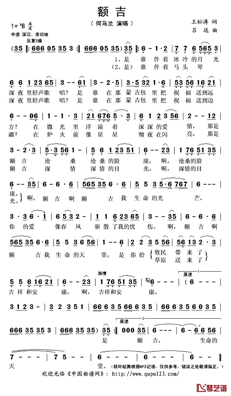 《何乌兰《额吉简谱》》内容来自于互联网,不能保证内容的准确性与完整性,仅供学习交流欣赏,请勿用于其它用途,内容版权归原作者及来源网站所有,如有侵犯到您的权益请来信告知,我们将及时删除。