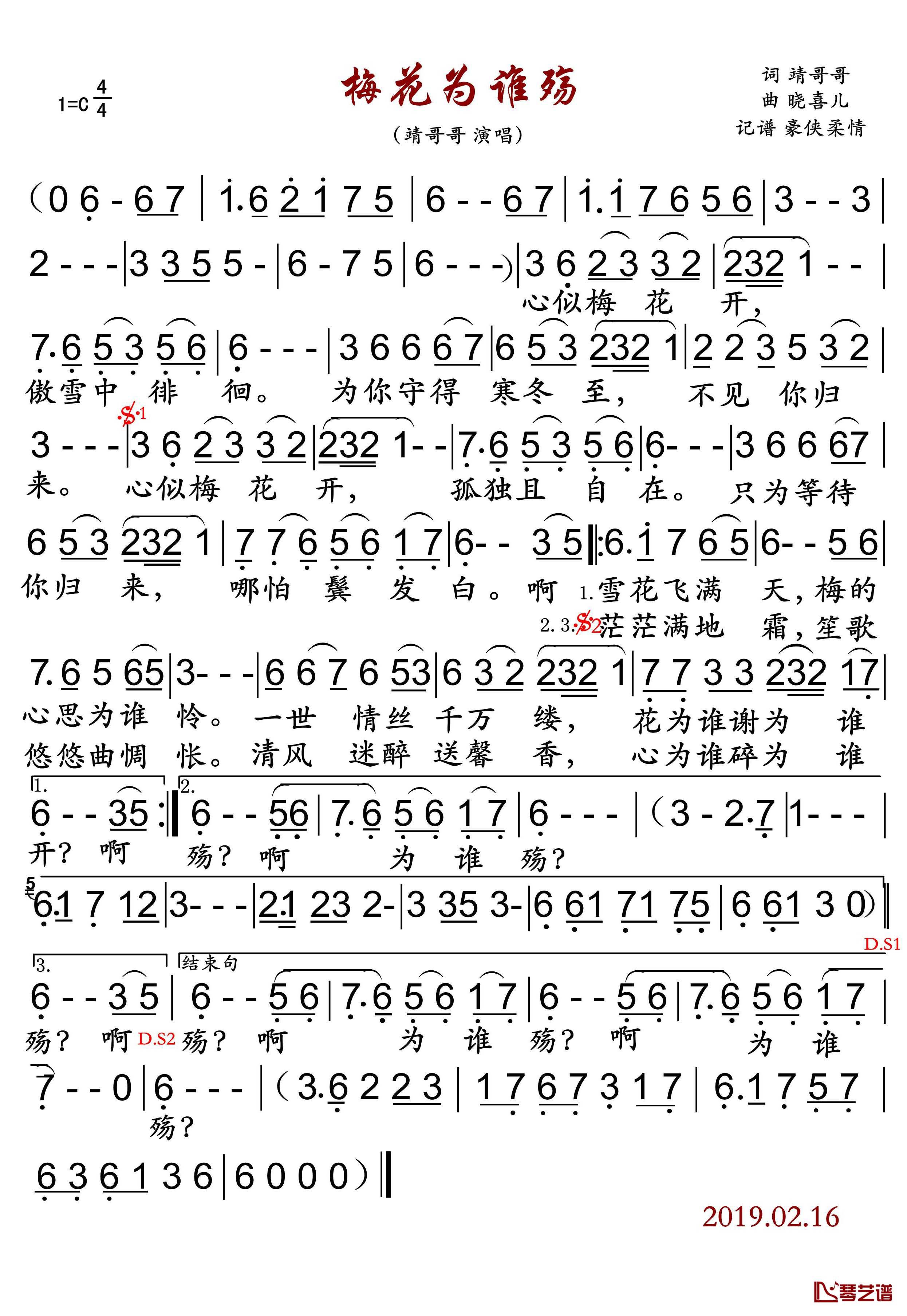 《靖哥哥《梅花为谁殇简谱》》内容来自于互联网,不能保证内容的准确性与完整性,仅供学习交流欣赏,请勿用于其它用途,内容版权归原作者及来源网站所有,如有侵犯到您的权益请来信告知,我们将及时删除。