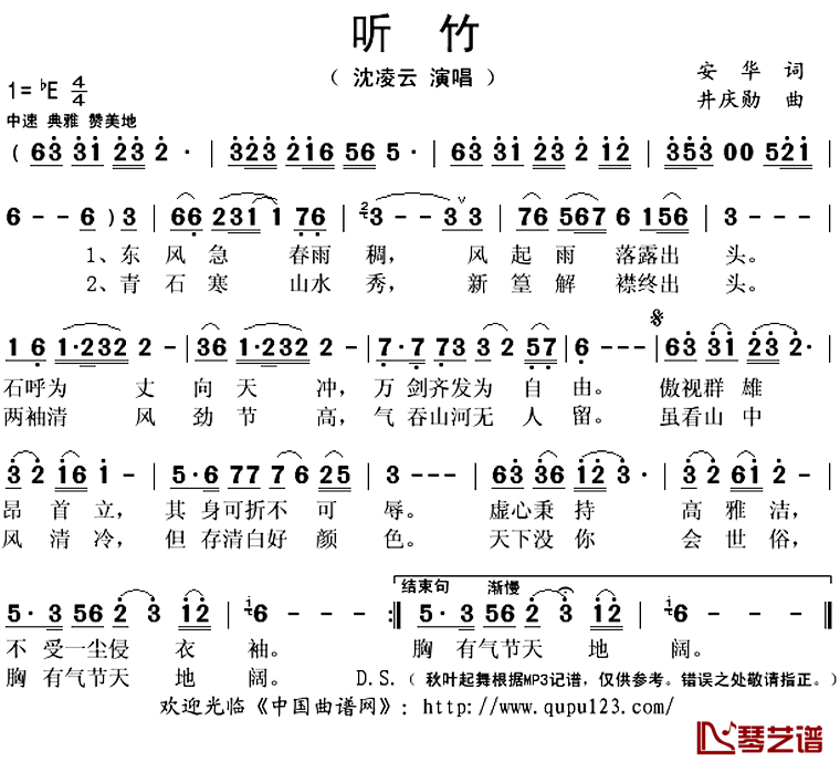 《沈凌云《听竹简谱》》内容来自于互联网,不能保证内容的准确性与完整性,仅供学习交流欣赏,请勿用于其它用途,内容版权归原作者及来源网站所有,如有侵犯到您的权益请来信告知,我们将及时删除。