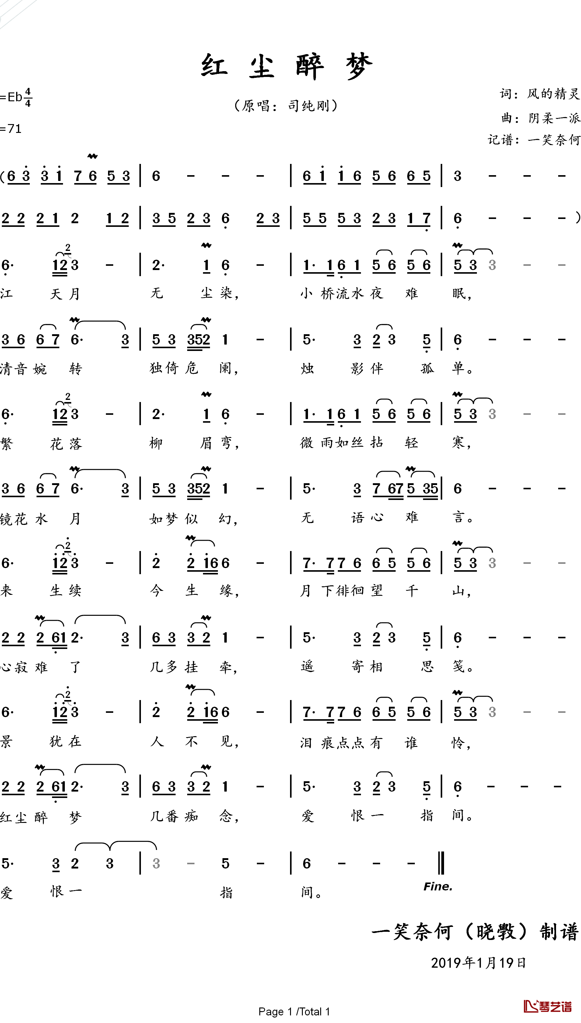 《司纯刚《红尘醉梦简谱》》内容来自于互联网,不能保证内容的准确性与完整性,仅供学习交流欣赏,请勿用于其它用途,内容版权归原作者及来源网站所有,如有侵犯到您的权益请来信告知,我们将及时删除。