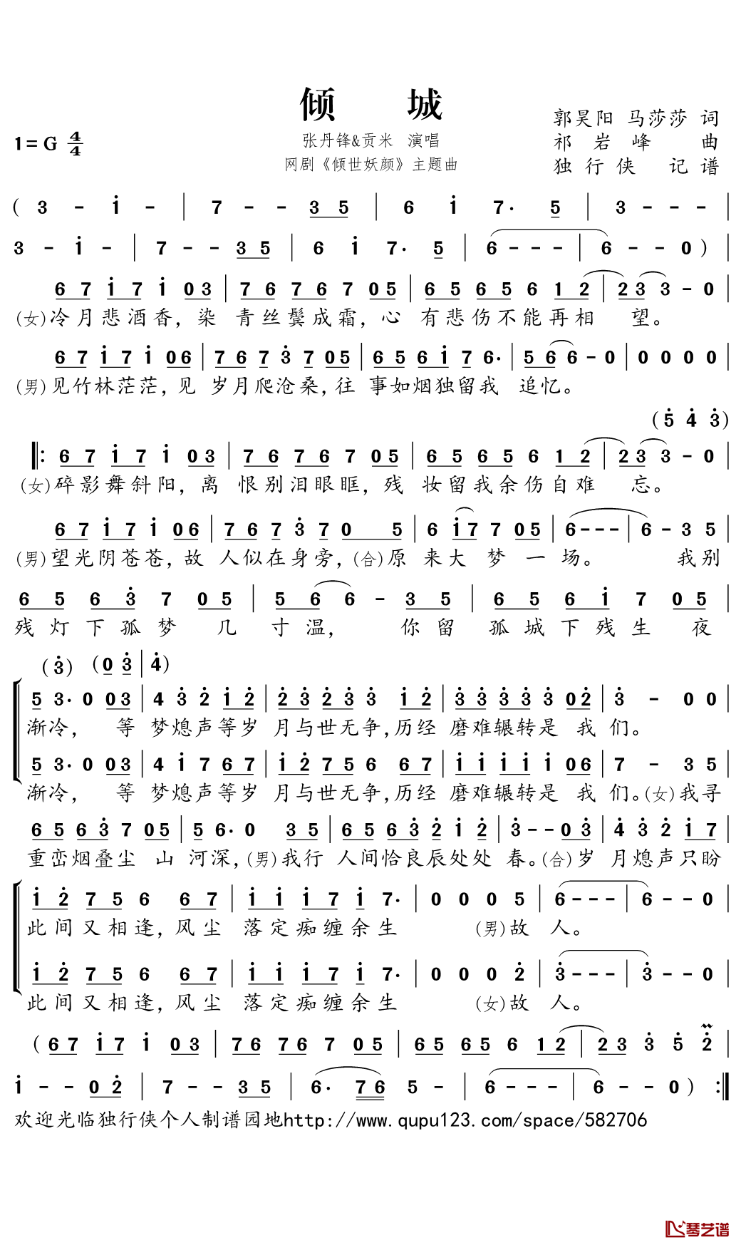 《张丹锋/贡米《倾城简谱》》内容来自于互联网,不能保证内容的准确性与完整性,仅供学习交流欣赏,请勿用于其它用途,内容版权归原作者及来源网站所有,如有侵犯到您的权益请来信告知,我们将及时删除。