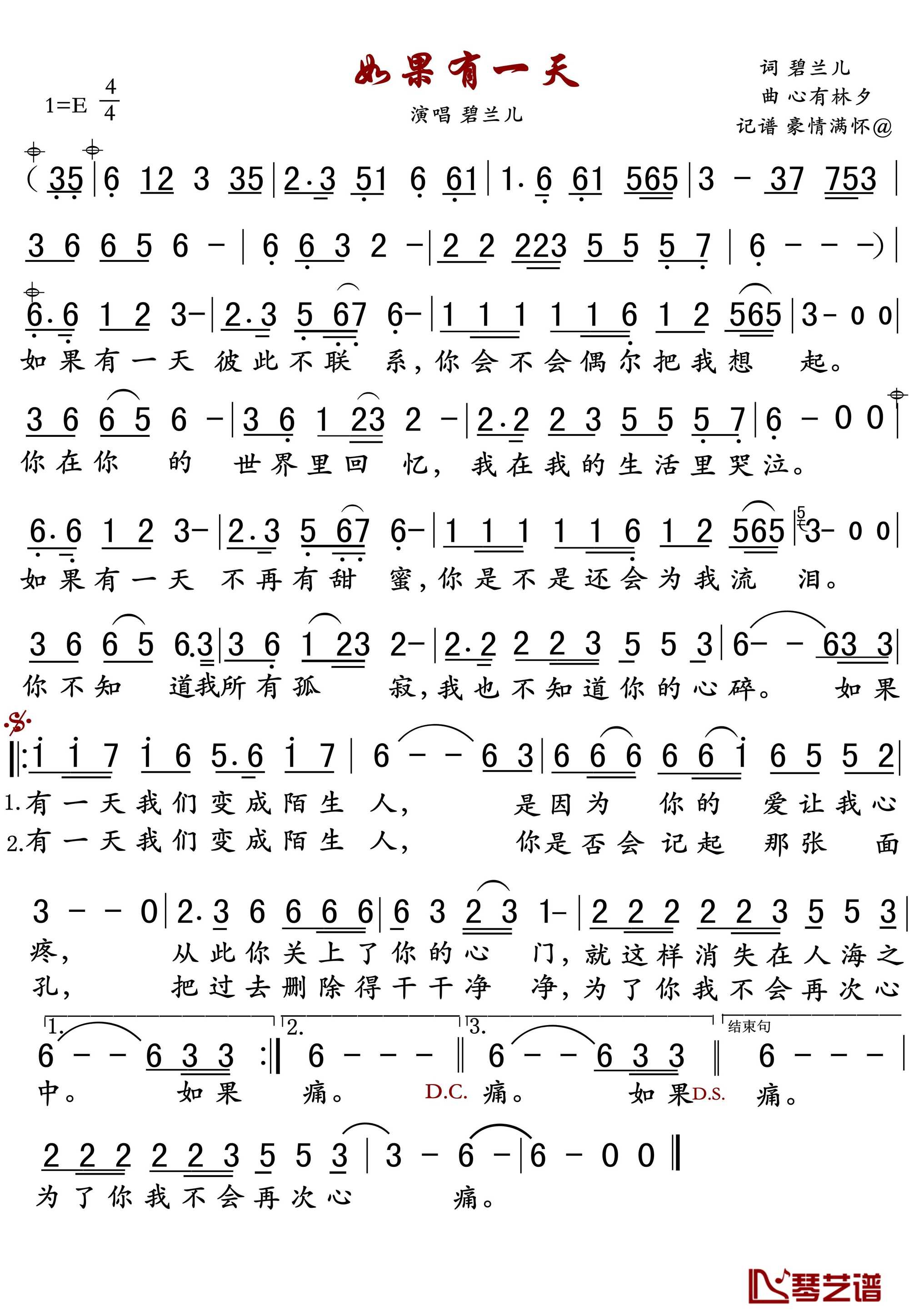 《碧兰儿《如果有一天简谱》》内容来自于互联网,不能保证内容的准确性与完整性,仅供学习交流欣赏,请勿用于其它用途,内容版权归原作者及来源网站所有,如有侵犯到您的权益请来信告知,我们将及时删除。