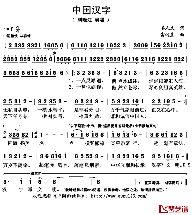 本文标题 《刘晓江《中国汉字简谱》》,网址:https://www.21qupu.com/jianpu/58075.html