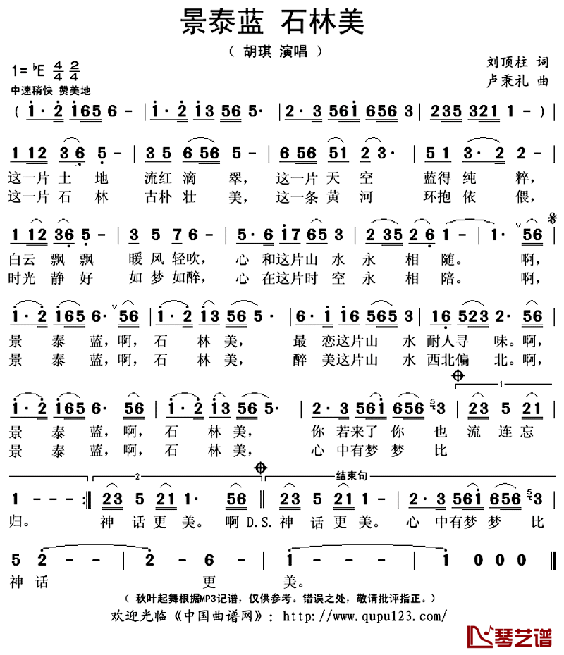 本文标题 《胡琪《石林美简谱》》,网址:https://www.21qupu.com/jianpu/58220.html