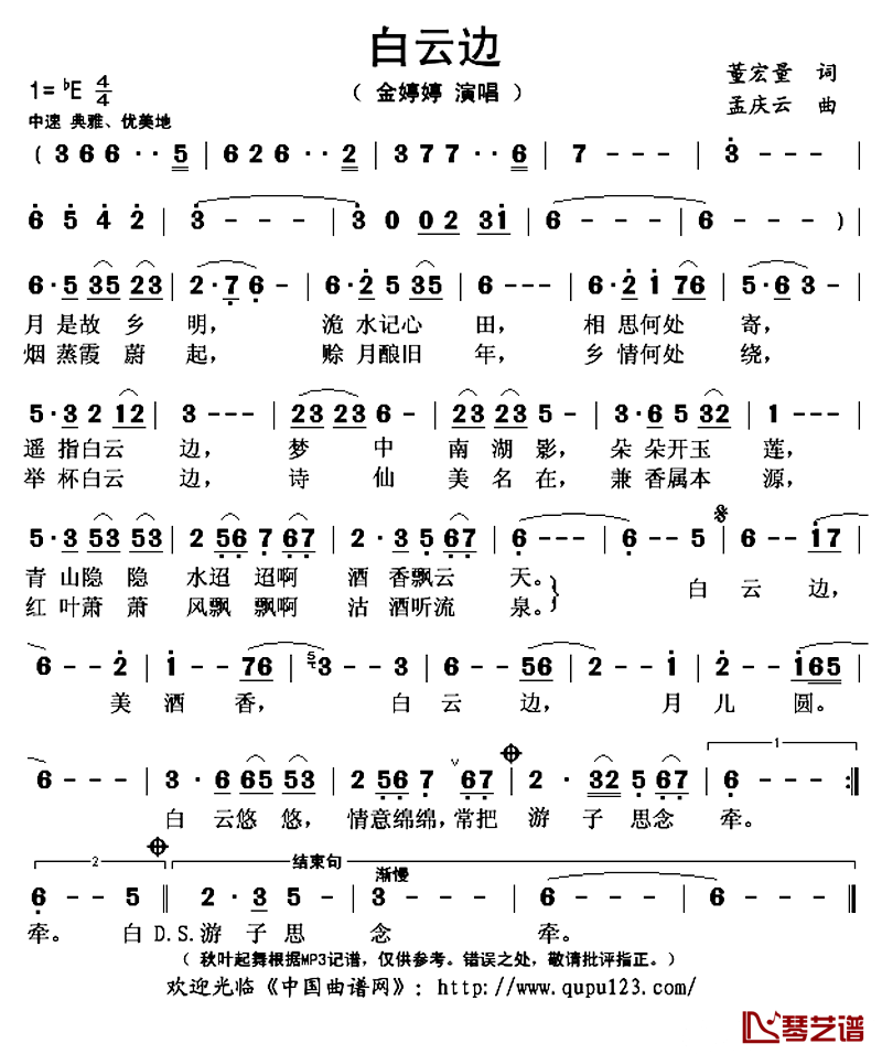 《金婷婷《白云边简谱》》内容来自于互联网,不能保证内容的准确性与完整性,仅供学习交流欣赏,请勿用于其它用途,内容版权归原作者及来源网站所有,如有侵犯到您的权益请来信告知,我们将及时删除。