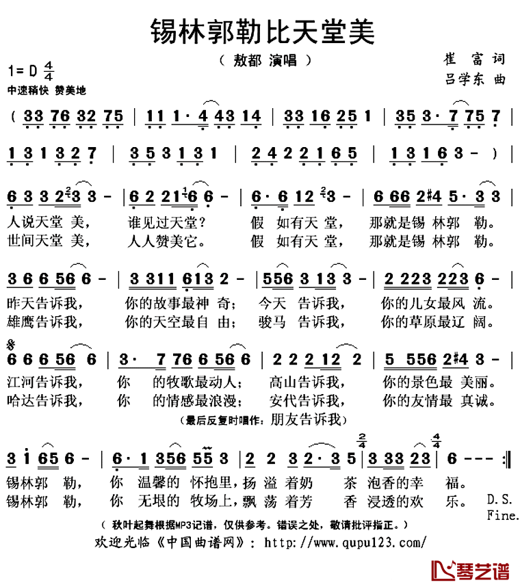 《敖都《锡林郭勒比天堂美简谱》》内容来自于互联网,不能保证内容的准确性与完整性,仅供学习交流欣赏,请勿用于其它用途,内容版权归原作者及来源网站所有,如有侵犯到您的权益请来信告知,我们将及时删除。