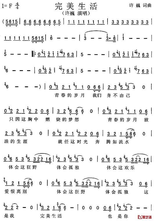 《许巍《完美生活简谱》》内容来自于互联网,不能保证内容的准确性与完整性,仅供学习交流欣赏,请勿用于其它用途,内容版权归原作者及来源网站所有,如有侵犯到您的权益请来信告知,我们将及时删除。