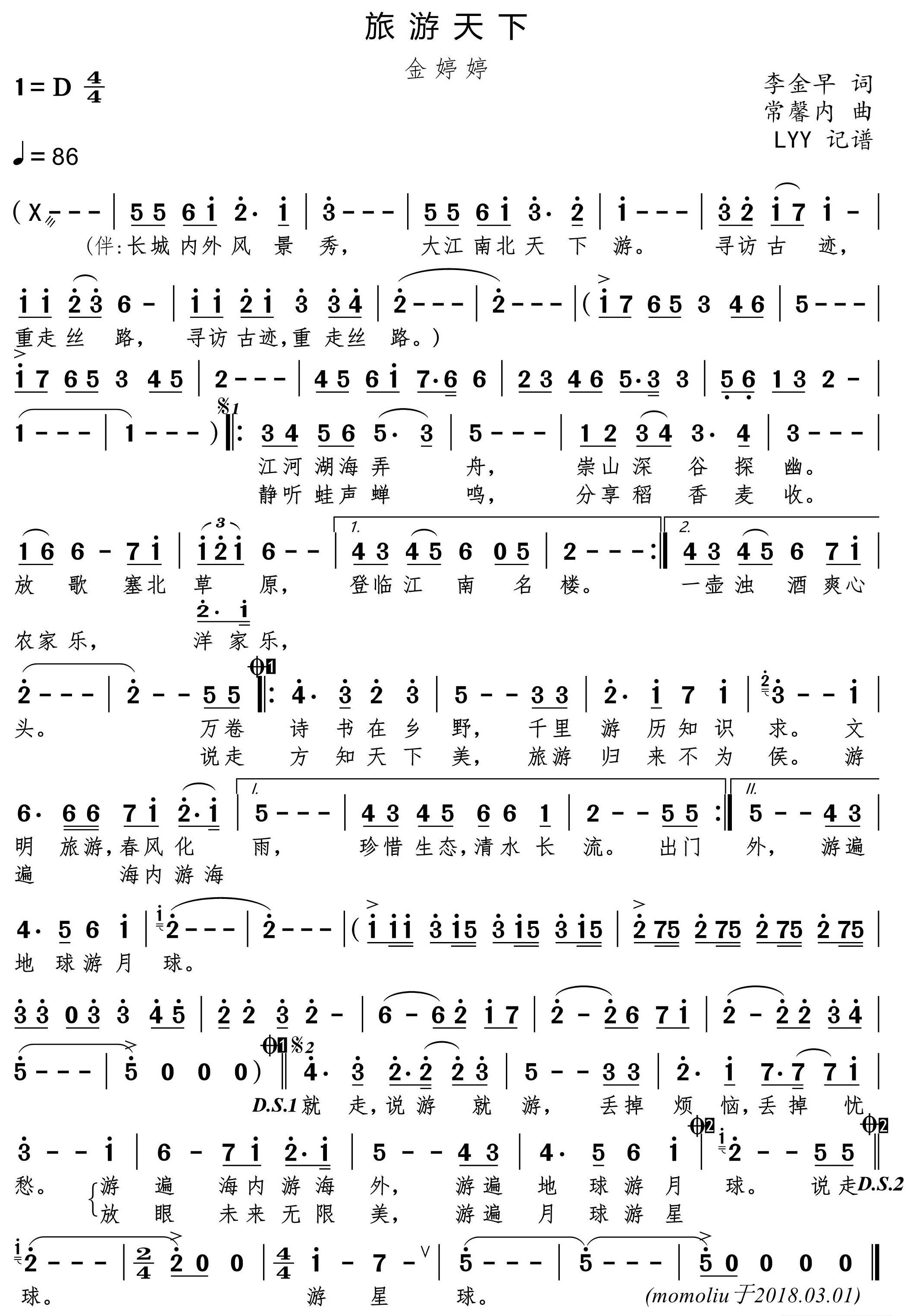 金婷婷《旅游天下(金婷婷)简谱》
