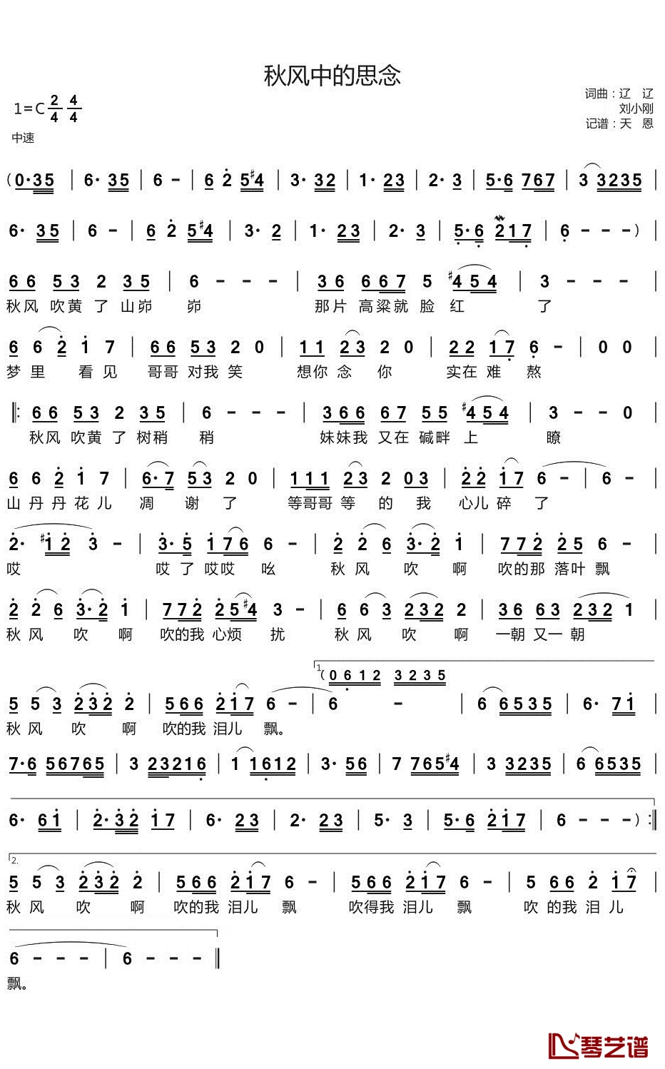 《辽辽《秋风中的思念简谱》》内容来自于互联网,不能保证内容的准确性与完整性,仅供学习交流欣赏,请勿用于其它用途,内容版权归原作者及来源网站所有,如有侵犯到您的权益请来信告知,我们将及时删除。
