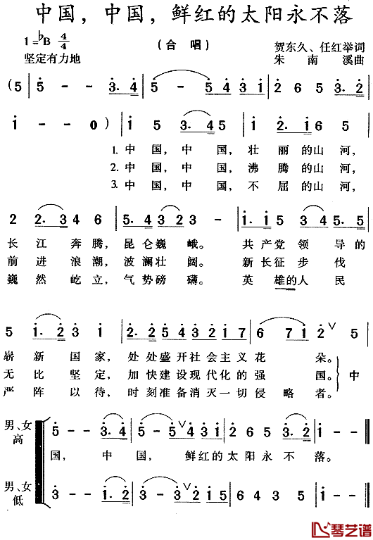上海乐团合唱队《中国中国鲜红的太阳永不落简谱》