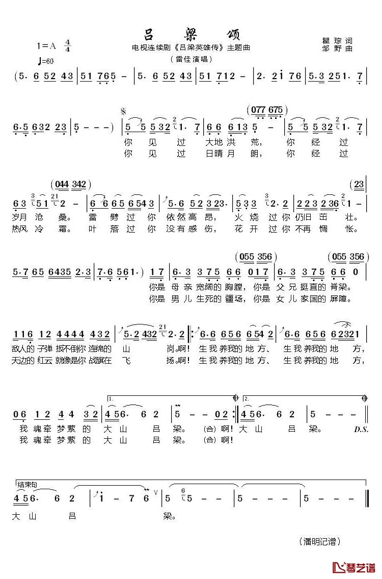 《雷佳《吕梁颂简谱》》内容来自于互联网,不能保证内容的准确性与完整性,仅供学习交流欣赏,请勿用于其它用途,内容版权归原作者及来源网站所有,如有侵犯到您的权益请来信告知,我们将及时删除。