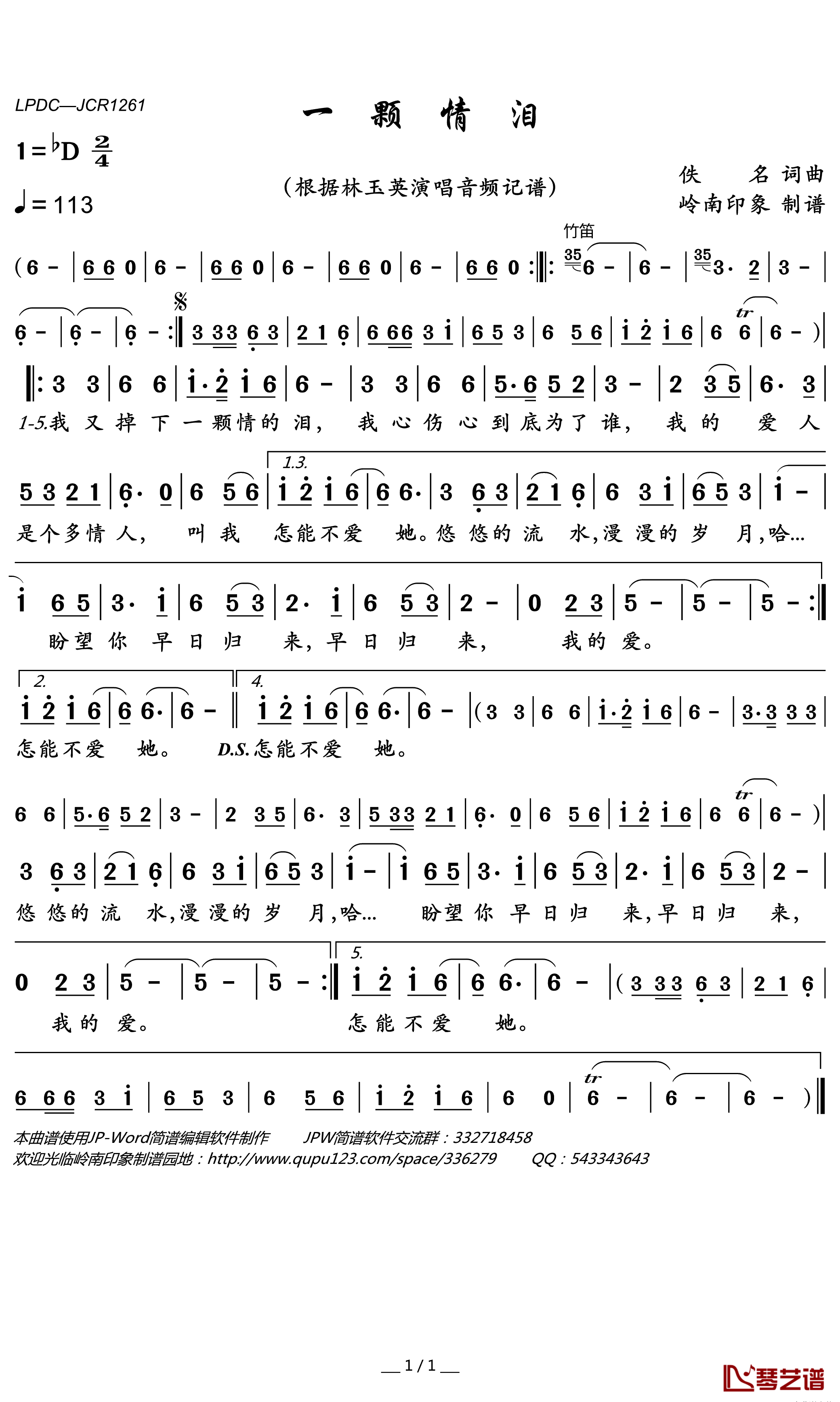 《林玉英《一颗情泪简谱》》内容来自于互联网,不能保证内容的准确性与完整性,仅供学习交流欣赏,请勿用于其它用途,内容版权归原作者及来源网站所有,如有侵犯到您的权益请来信告知,我们将及时删除。