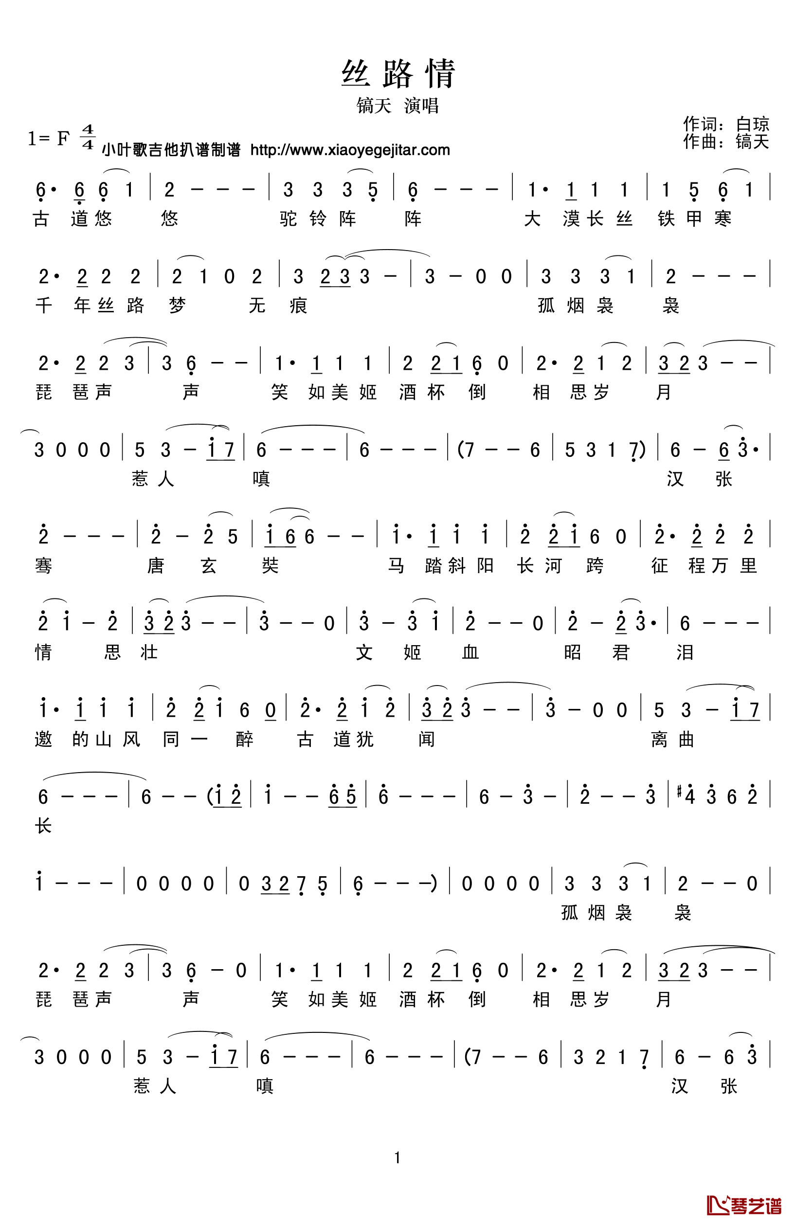 《镐天《丝路情简谱》》内容来自于互联网,不能保证内容的准确性与完整性,仅供学习交流欣赏,请勿用于其它用途,内容版权归原作者及来源网站所有,如有侵犯到您的权益请来信告知,我们将及时删除。