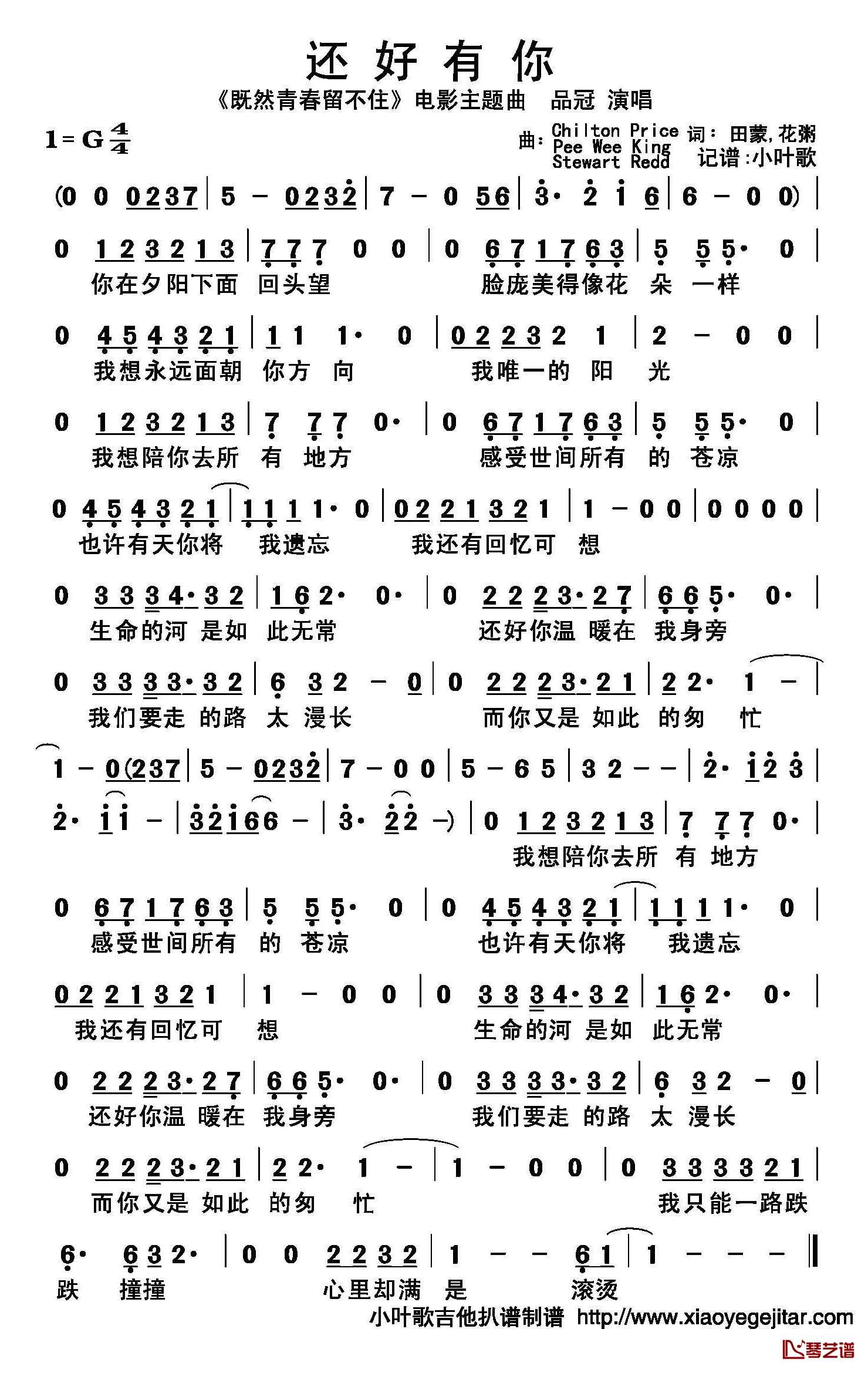 《品冠《还好有你简谱》》内容来自于互联网,不能保证内容的准确性与完整性,仅供学习交流欣赏,请勿用于其它用途,内容版权归原作者及来源网站所有,如有侵犯到您的权益请来信告知,我们将及时删除。