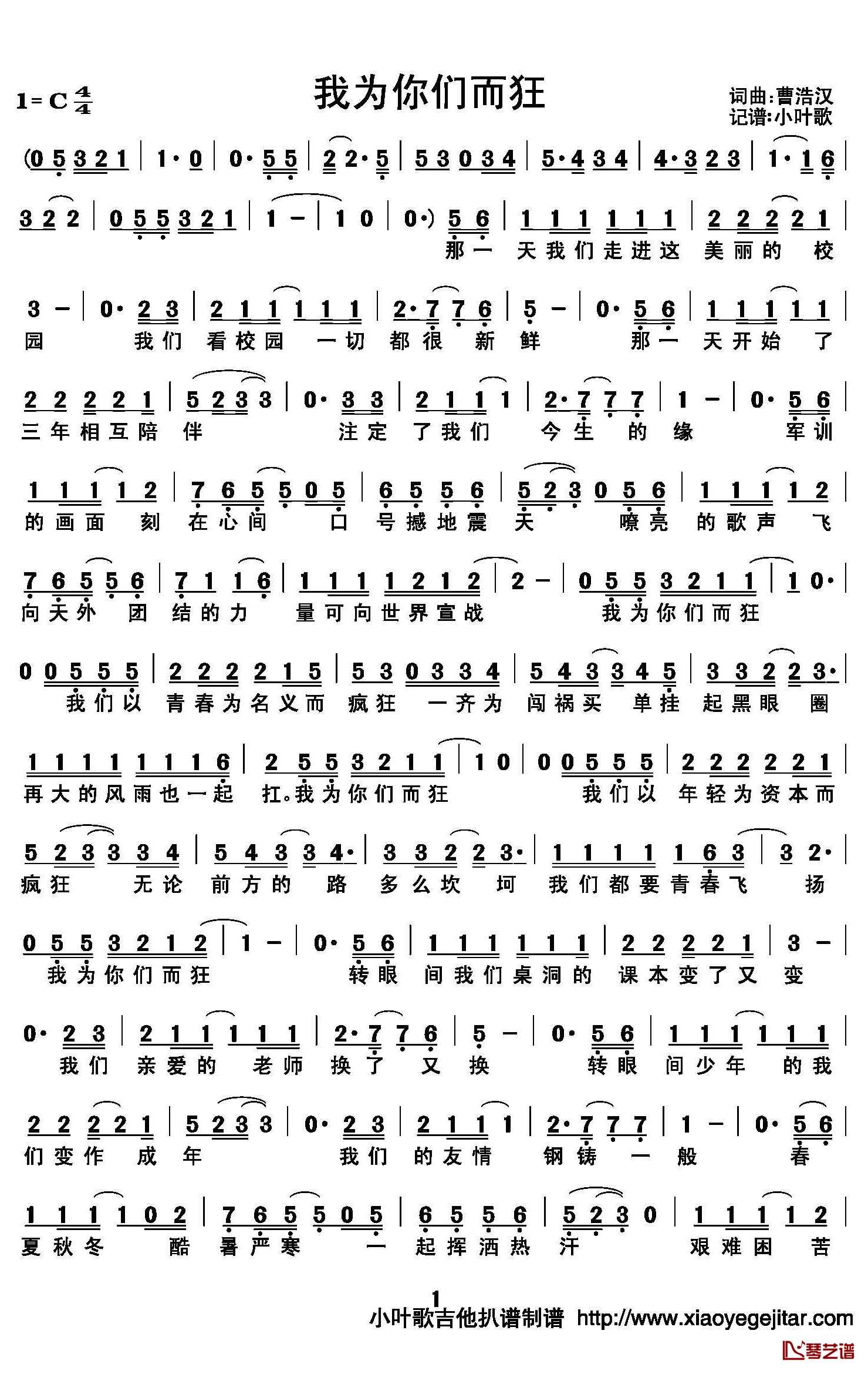 《曹浩汉《我为你们而狂简谱》》内容来自于互联网,不能保证内容的准确性与完整性,仅供学习交流欣赏,请勿用于其它用途,内容版权归原作者及来源网站所有,如有侵犯到您的权益请来信告知,我们将及时删除。