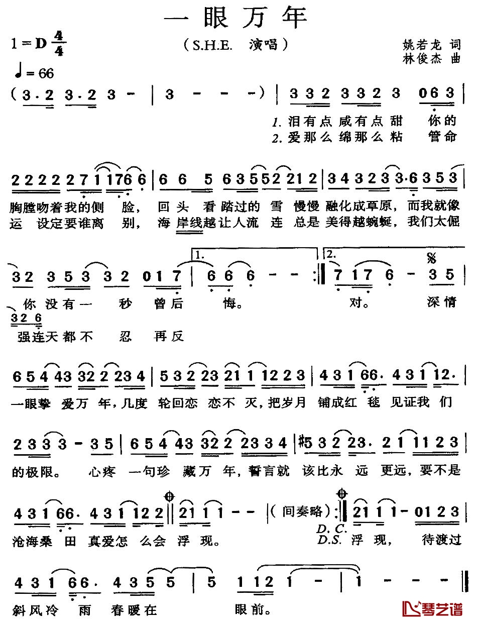 《S.H.E《一眼万年简谱》》内容来自于互联网,不能保证内容的准确性与完整性,仅供学习交流欣赏,请勿用于其它用途,内容版权归原作者及来源网站所有,如有侵犯到您的权益请来信告知,我们将及时删除。