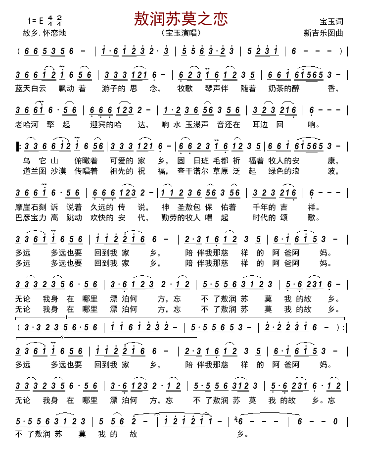 《宝玉《敖润苏莫之恋简谱》》内容来自于互联网,不能保证内容的准确性与完整性,仅供学习交流欣赏,请勿用于其它用途,内容版权归原作者及来源网站所有,如有侵犯到您的权益请来信告知,我们将及时删除。