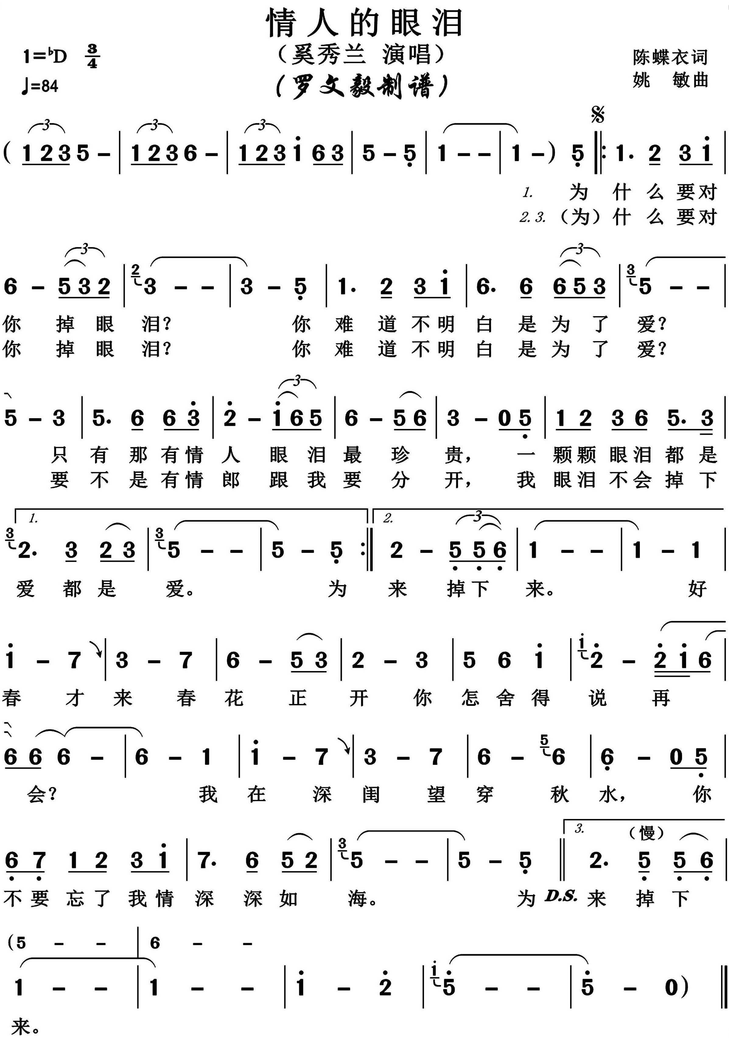 《奚秀兰《情人的眼泪简谱》》内容来自于互联网,不能保证内容的准确性与完整性,仅供学习交流欣赏,请勿用于其它用途,内容版权归原作者及来源网站所有,如有侵犯到您的权益请来信告知,我们将及时删除。
