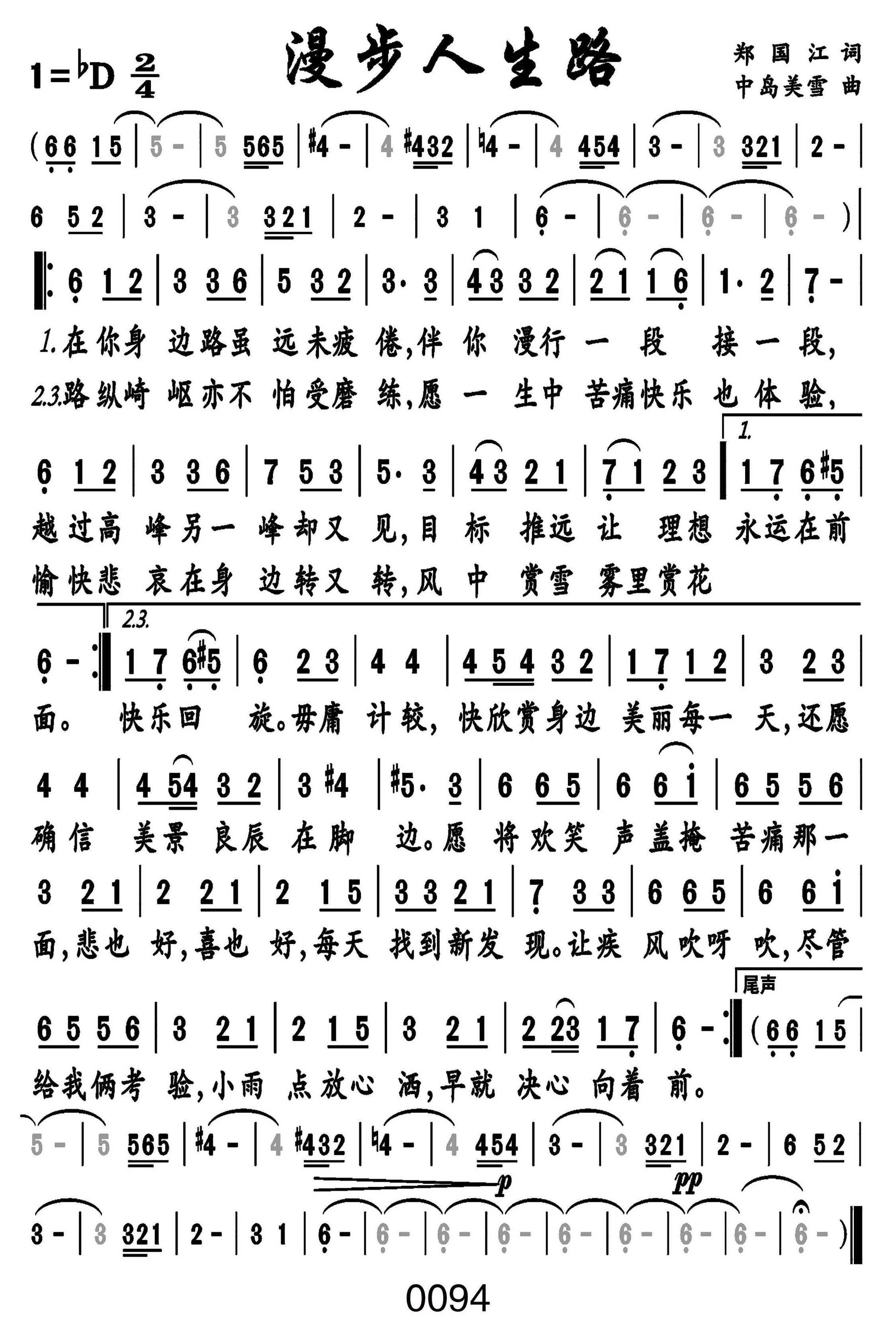 《邓丽君《漫步人生路简谱》》内容来自于互联网,不能保证内容的准确性与完整性,仅供学习交流欣赏,请勿用于其它用途,内容版权归原作者及来源网站所有,如有侵犯到您的权益请来信告知,我们将及时删除。