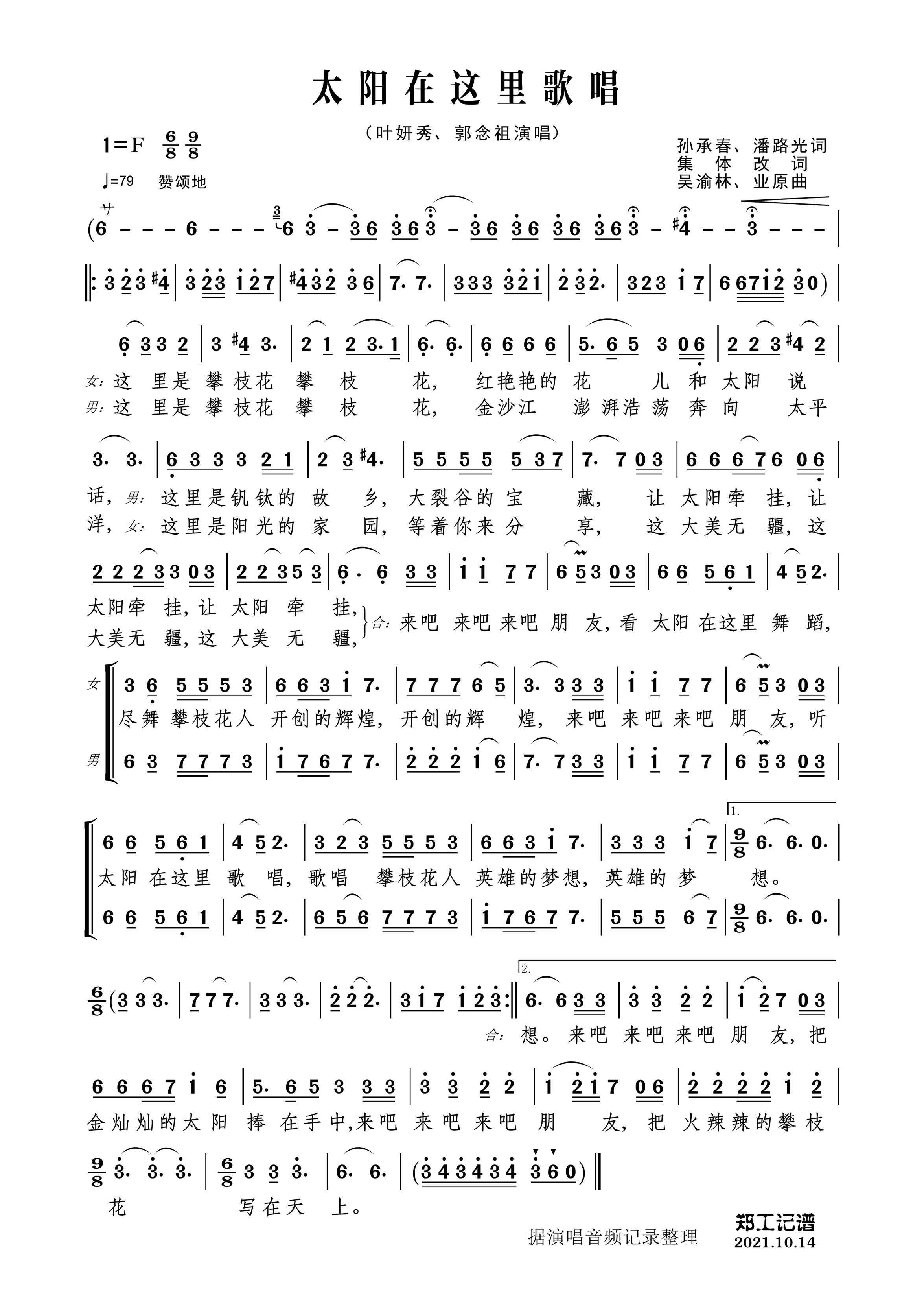 《叶妍秀《太阳在这里歌唱简谱》》内容来自于互联网,不能保证内容的准确性与完整性,仅供学习交流欣赏,请勿用于其它用途,内容版权归原作者及来源网站所有,如有侵犯到您的权益请来信告知,我们将及时删除。