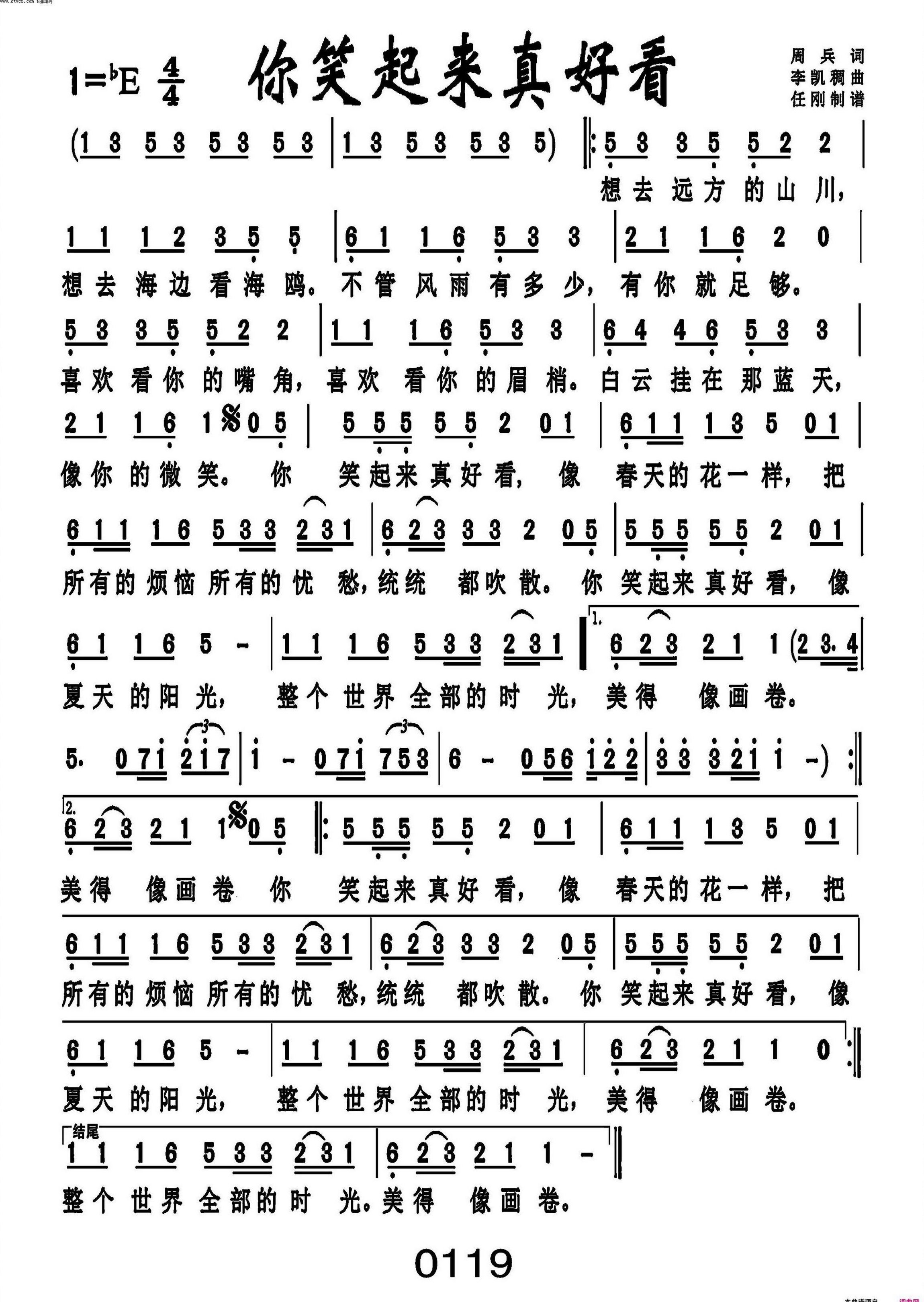 《李昕融《你笑起来真好看简谱》》内容来自于互联网,不能保证内容的准确性与完整性,仅供学习交流欣赏,请勿用于其它用途,内容版权归原作者及来源网站所有,如有侵犯到您的权益请来信告知,我们将及时删除。