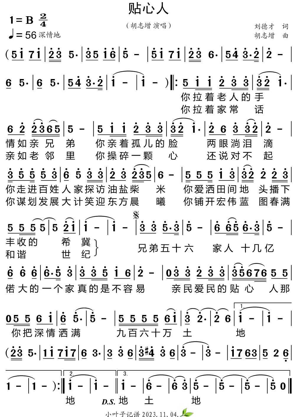 本文标题 《胡志增《贴心人简谱》》,网址:https://www.21qupu.com/jianpu/8776.html
