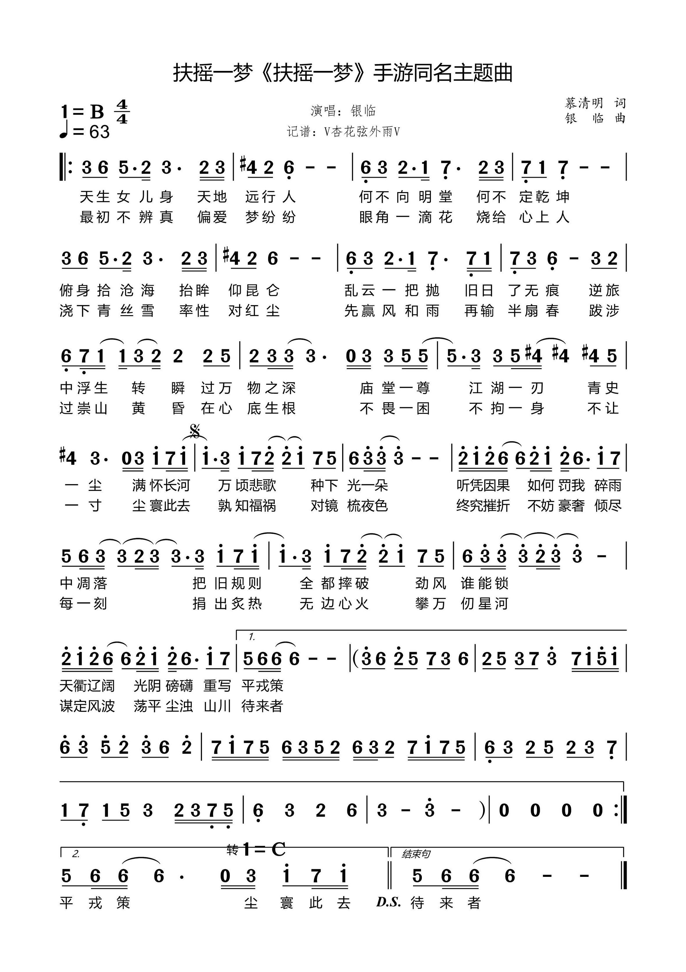 《银临《扶摇一梦简谱》》内容来自于互联网,不能保证内容的准确性与完整性,仅供学习交流欣赏,请勿用于其它用途,内容版权归原作者及来源网站所有,如有侵犯到您的权益请来信告知,我们将及时删除。