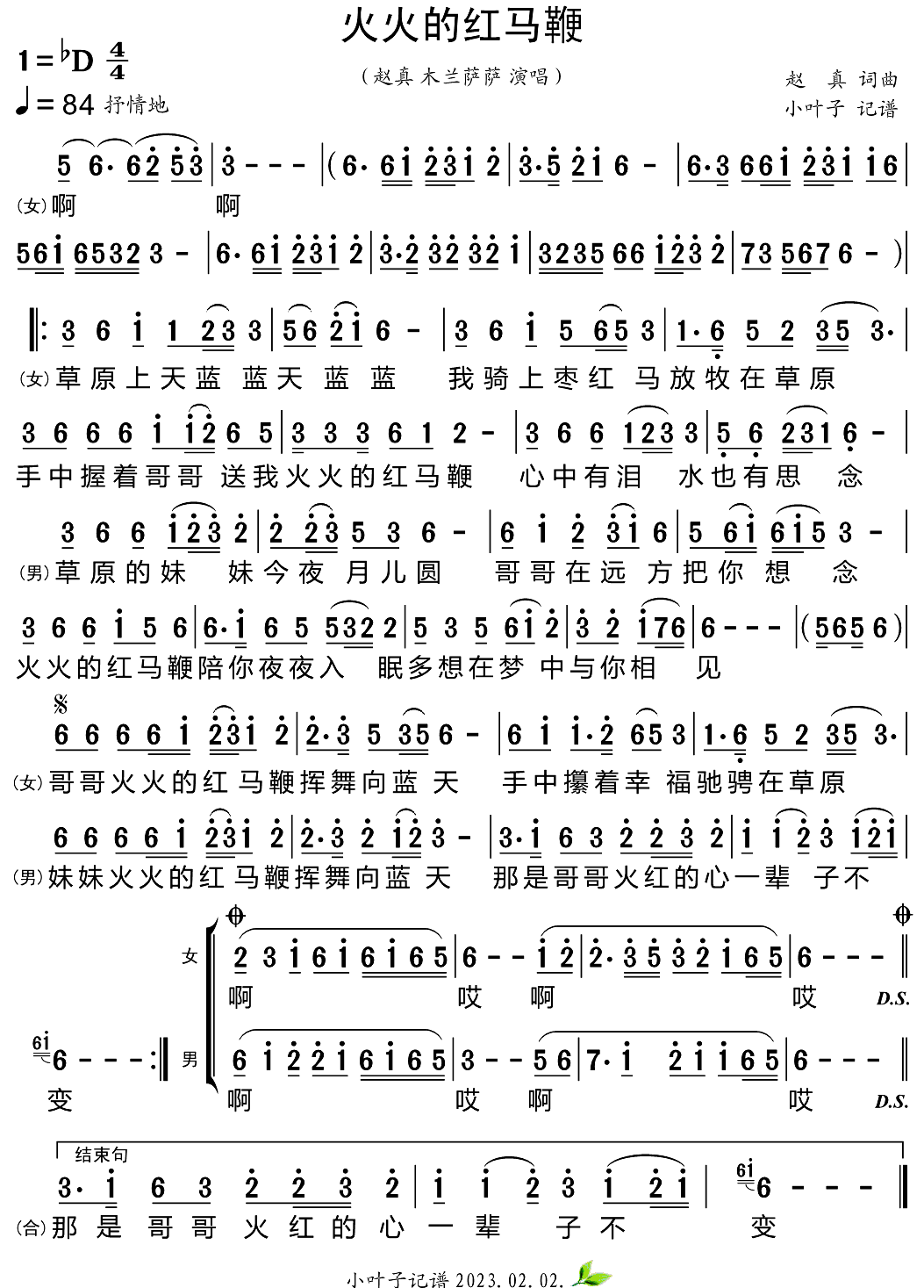 赵真《火火的红马鞭简谱》