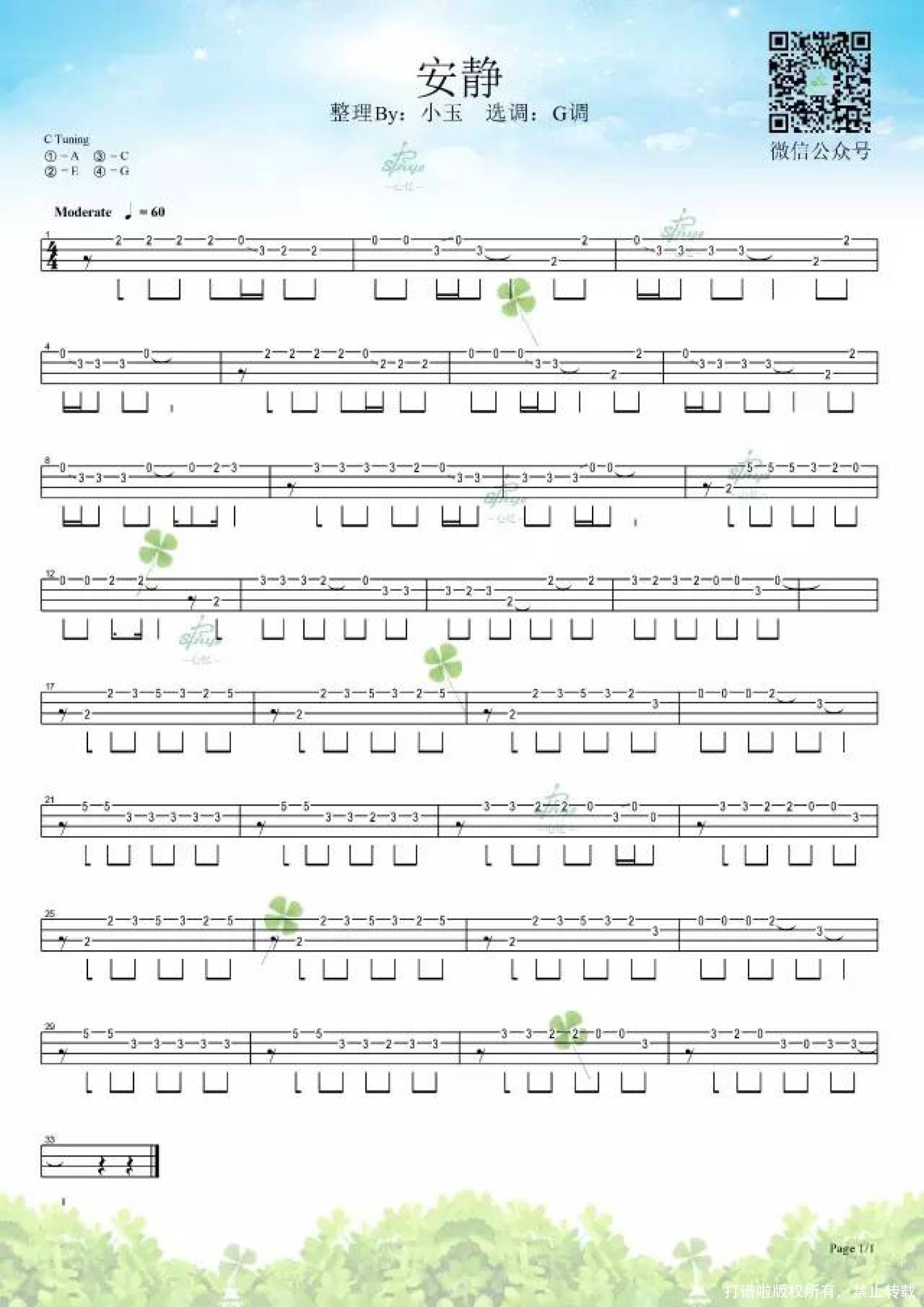 《周杰伦《安静尤克里里谱》(G调)》内容来自于互联网,不能保证内容的准确性与完整性,仅供学习交流欣赏,请勿用于其它用途,内容版权归原作者及来源网站所有,如有侵犯到您的权益请来信告知,我们将及时删除。
