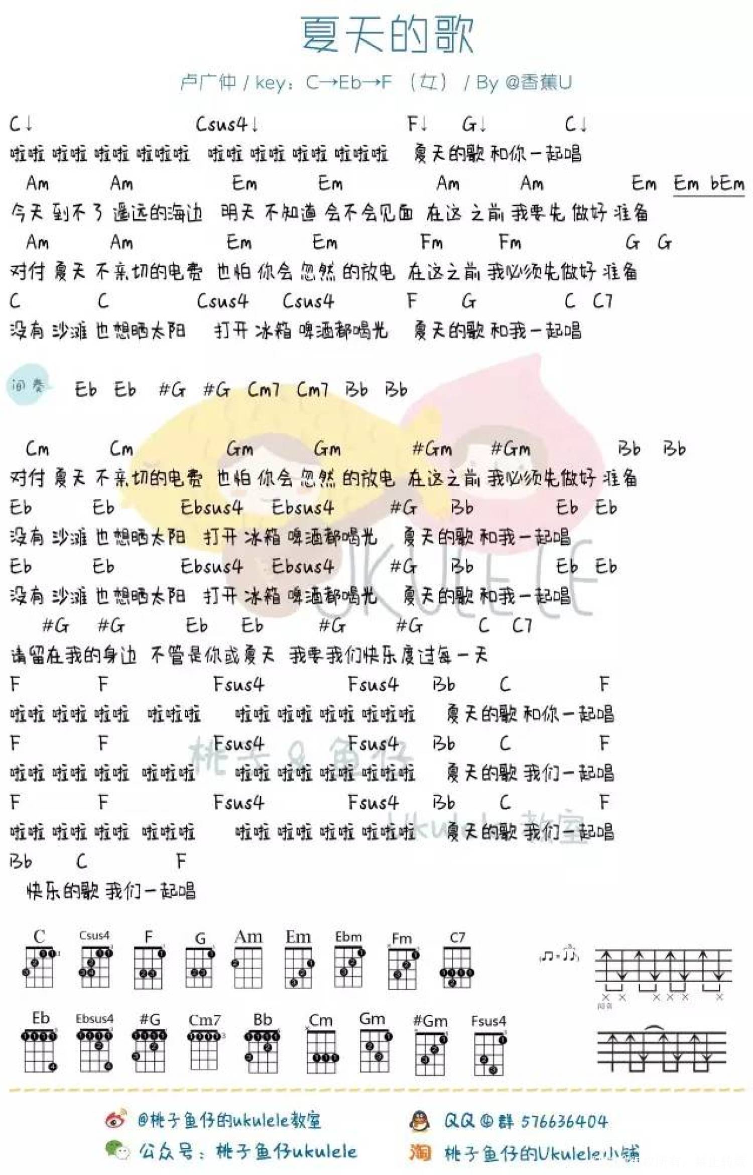 《卢广仲《夏 天 的 歌尤克里里谱》(C调)》内容来自于互联网,不能保证内容的准确性与完整性,仅供学习交流欣赏,请勿用于其它用途,内容版权归原作者及来源网站所有,如有侵犯到您的权益请来信告知,我们将及时删除。